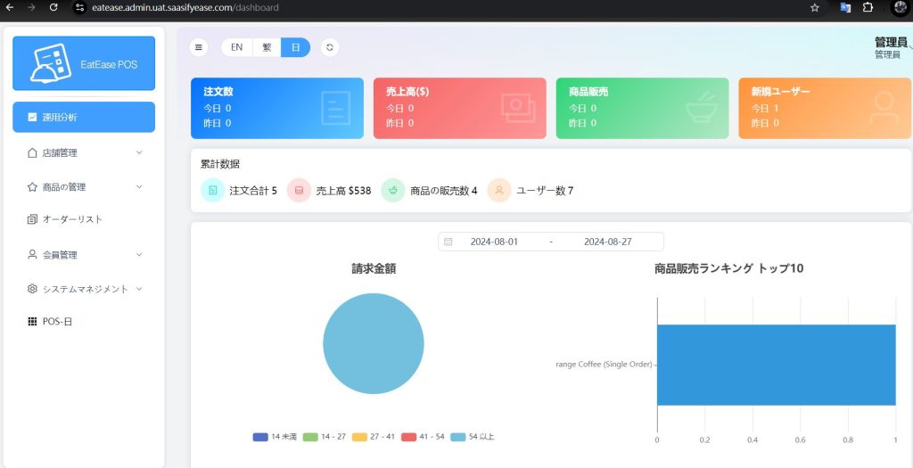 • 売上レポート、時間帯別売上分析、人気メニューランキングなど多彩な分析ツール。
