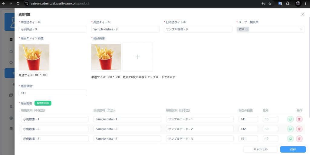 • メニューアイテムの在庫管理と売り切れ設定。